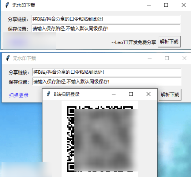因为B站需要登陆,不然下载的视频都是标清的,所以加入了扫码登陆的功能