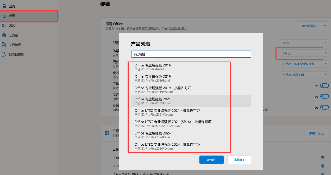 Office Tool Plus 支持多个 Office 许可版本的部署,用户只需几步配置即可开始下载、安装。同时为有需要的用户开设了多种安装选项,